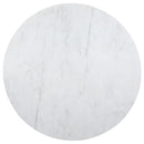 Freshen up your elegant dining room with the luxurious look and feel of genuine marble. This modern dining table pairs a round silhouette with beautiful white marble complete with light grey veining that offers organic elegance and dimensionality. This striking table stands on a conical pedestal base that receives a gleaming gold finish that radiates warmth and sophistication. This table is a stunning addition in a formal dining space, offering refined character to family and friends. The pairing of cool marble and warm brushed gold strikes a perfect balance.