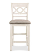 The Cori Dining Set is a stylish and functional addition to any home. It includes a round dining table and four chairs, all made from a combination of Mindy and rubberwood solids and veneers. This material provides a sturdy and durable foundation for the set, while also adding a touch of warmth and natural beauty to the design. The set is available in four distinct colors: cherry, gray, two tone bisque/brown, giving you the opportunity to choose the one that best matches your personal style and decor. Each chair is upholstered in 100% polyester fabric for a comfortable seating experience, and the round table is perfect for intimate dinners or casual meals with friends and family. The set is also available in a counter height option, allowing you to choose the one that best fits your space. Overall, the Cori Dining Set is a versatile and stylish choice for any dining room.