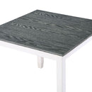 Freshen up your dining room decor with these chairs, bench, and table. With a bright white finish, it's like a ray of sunshine brought indoors! The tapered wooden legs and contoured frames of the matching chair are all finished in the same lively color. Conversely, the padded linen-like cushions and the flat table top are finished in a lighter shade of gray--giving this set just enough contrast without losing its bubbly appeal.