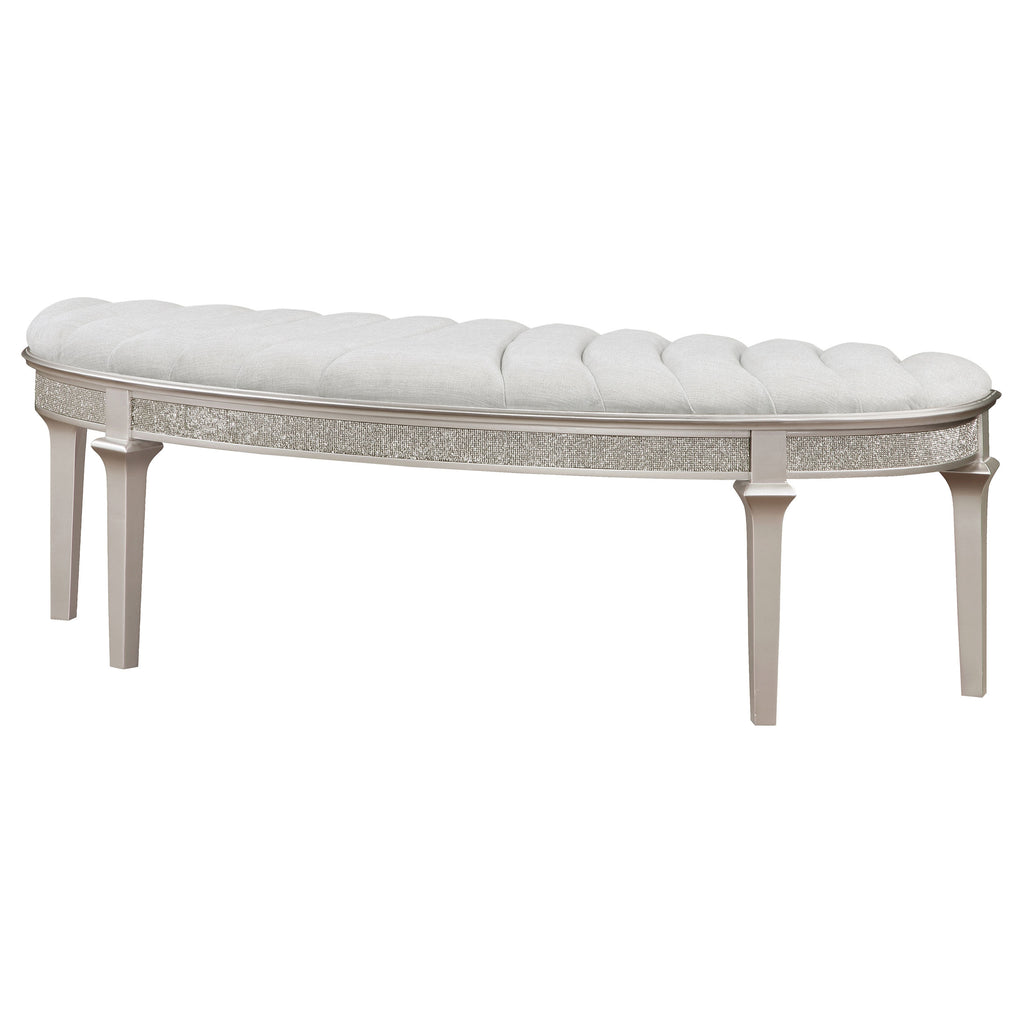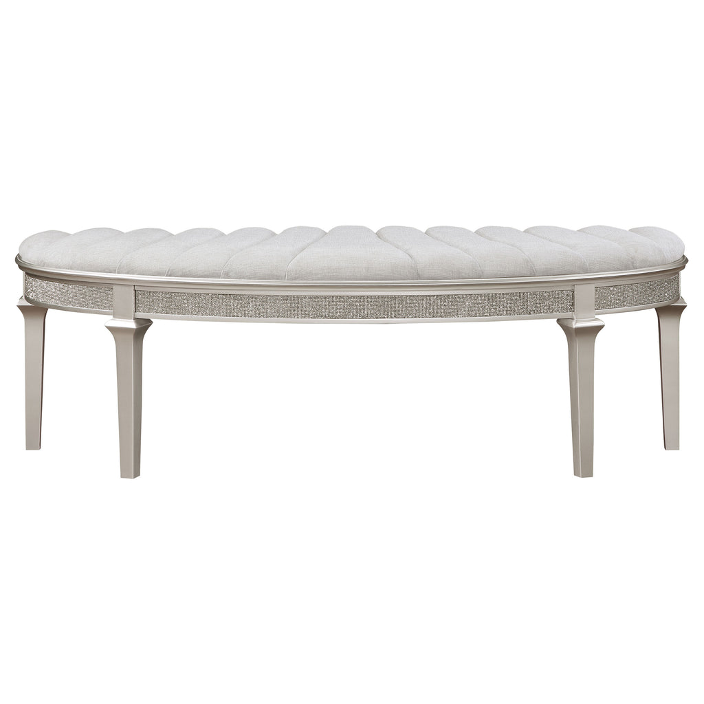 Evangeline Upholstered Demilune Bench Ivory and Silver Oak