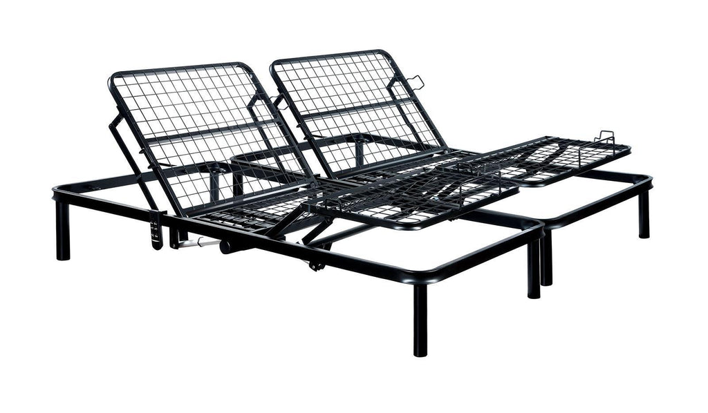 FRAMOS Black Adjustable Bed Frame - E.King, 79"W X 82"D X 13 1/4"H, 70.4lbs. This versatile bed frame adjusts in a press of a button. The integrated motor is German-engineered and available in three sizes. Features: Adjustable Bed Frame Remote-Controlled Integrated German-Engineered Motor