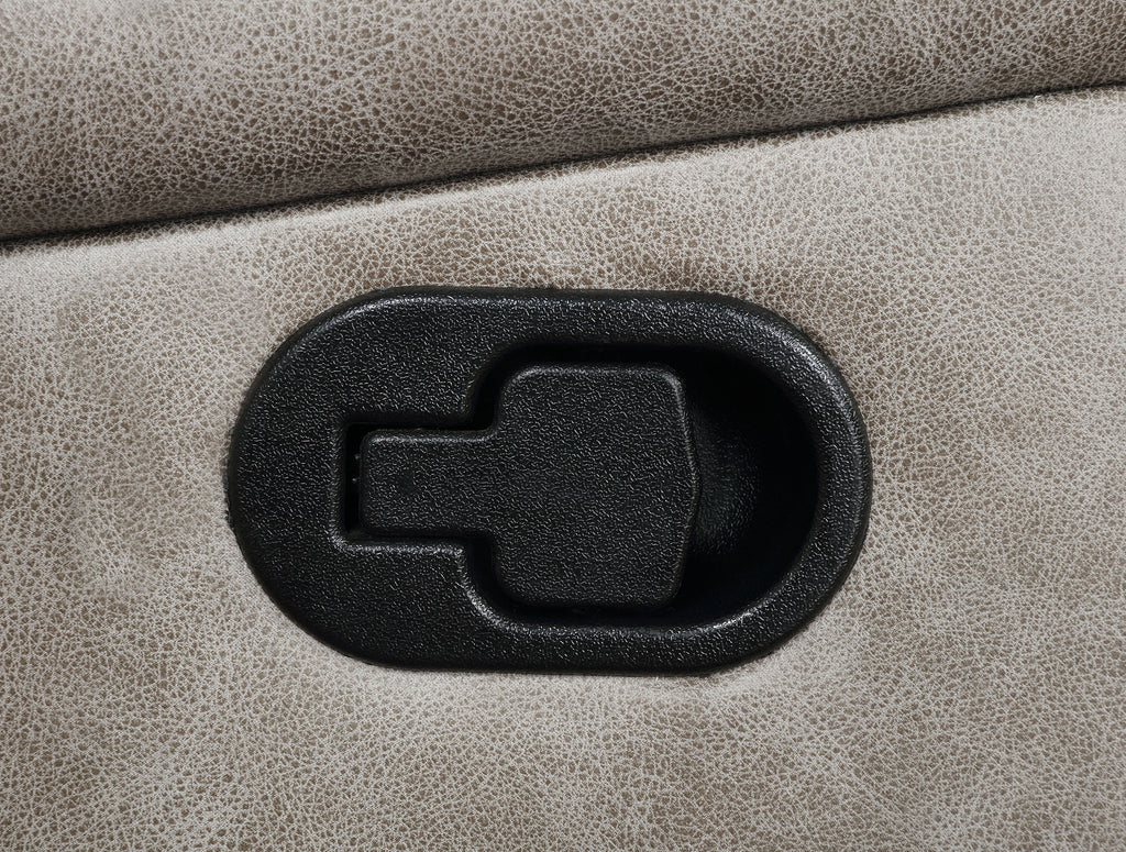 This reclining sofa set combines movie-night function with everyday comfort. Supple leatherette and contrast stitching frame pocket-coil seats topped with memory foam for supportive ease. Manual reclining mechanisms operate smoothly, with a wall-hugger design on the sofa to save floor space. A drop-down center table adds a pop-up power hub with USB charging and stainless steel cup holders, while the loveseat’s console brings lift-top storage, power, and cup holders to keep essentials close. Key Features: • Two-piece reclining sofa set in taupe faux leather with contrast stitching • Manual reclining seats operate smoothly for relaxed, everyday comfort • Wall-hugger design on sofa provides full recline while saving floor space • Sofa drop-down table adds pop-up power with two AC and two USB outlets • Loveseat console includes lift-top storage and stainless steel cup holders • Pocket-coil seating with memory foam offers supportive, long-lasting ease