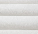 Let this chic and comfy set bring excitement and personality to your living room. Not only is the silhouette fun, inviting, and unique, but the fabric itself is a statement of its own. Bright white boucle fabric wraps around the piece, filling every deep horizontal tuft. Tall tuxedo-like arms and backrest cradle the lengthy bench-style seat cushion between. Gold-plated steel legs is the proverbial cherry on top of this decidedly alluring piece.