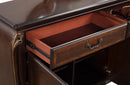 The Montecito Dining Collection is a luxurious line of furniture that coalesces modern design with the craftsmanship of handmade wood carvings. It 100% polyester upholstery in various custom-designed fabrics, each with its own elegant pattern. The button-tufted backing gives a one-of-a-kind look for producing an exquisite dining room setting.