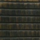 The easy, nature-inspired presence of gorgeous wood delivers a tasteful look to this five-piece dining set, a super choice for any space. Start fresh with a set anchored by a natural finish sheesham table with a spacious rectangular top and tapered, rounded legs. A dark apron with geometric design detail adds an energizing effect. Mid-Century Modern influence styles easy side chairs with scoop seats and a thick back, both with channeling. Metal framing features iconic retro slender rounded, splayed legs.