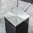 Quite the attention grabber, this collection willimmediately become the focal point of your home.Family and friends are sure to admire your fine tastewhen they lay eyes on this one-of-a-kind table. Boldposts create a sturdy base for the 10 mm temperedglass top featuring smooth, curved edges. Matchingpadded faux leather chairs complete the look withtheir U-shaped chrome legs, which comes in eitherwhite or black. This set is available in both standardand counter height.