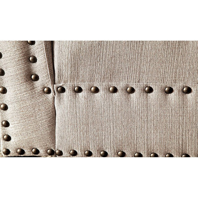 Add subtle color to your bedroom or living room with this stylishly upholstered chaise. The curved arm adds emphasis to the lengthy structure while nailhead accents pop against the smooth fabric.